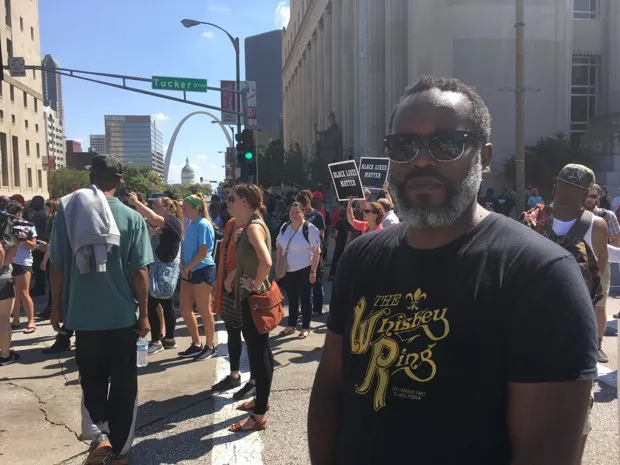 “我希望我能说我很惊讶,但这是一种模式,”圣路易斯居民罗恩·斯特劳布里奇在市政厅外抗议时说。“我心碎了。这真是毁灭性的。”