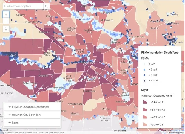 在风暴之前,休斯顿近一半的人口是租户(45%),而休斯顿一些人口密集的租户居住区遭遇了最严重的洪水,依据金德研究所的 休斯顿社区数据连接。尽管这座城市以可负担性著称,国家低收入住房联盟仍将休斯顿列为 极低收入家庭租房可用性最低的主要大都市区之一——生活在联邦贫困线以下的家庭。