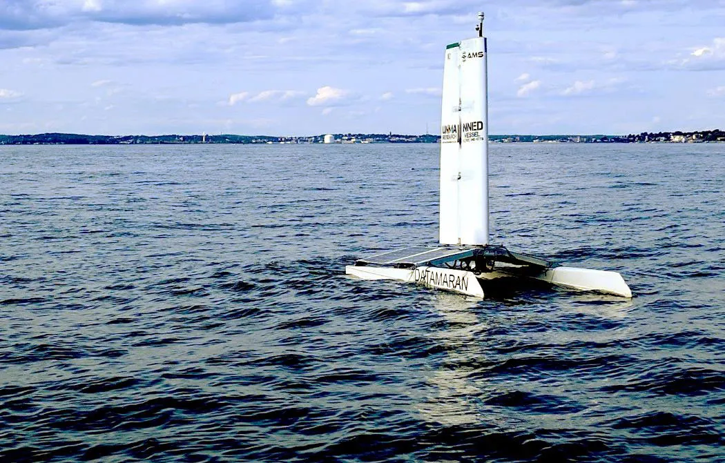 AMS的Datamaran在波士顿海域。自主海洋系统当商业船长在水中发现AMS的船只时,他们常常通知海岸警卫队,以为有人掉下水了。它的玻璃纤维帆现在写着“无人驾驶船”,并包括一个供路人拨打的电话号码以便咨询。自从做出这个改变以来,Paintal说他接到了两个电话。一个来自波士顿消防局,另一个来自一位休闲船主。在这两种情况下,他们的问题都是一样的:这是什么东西?