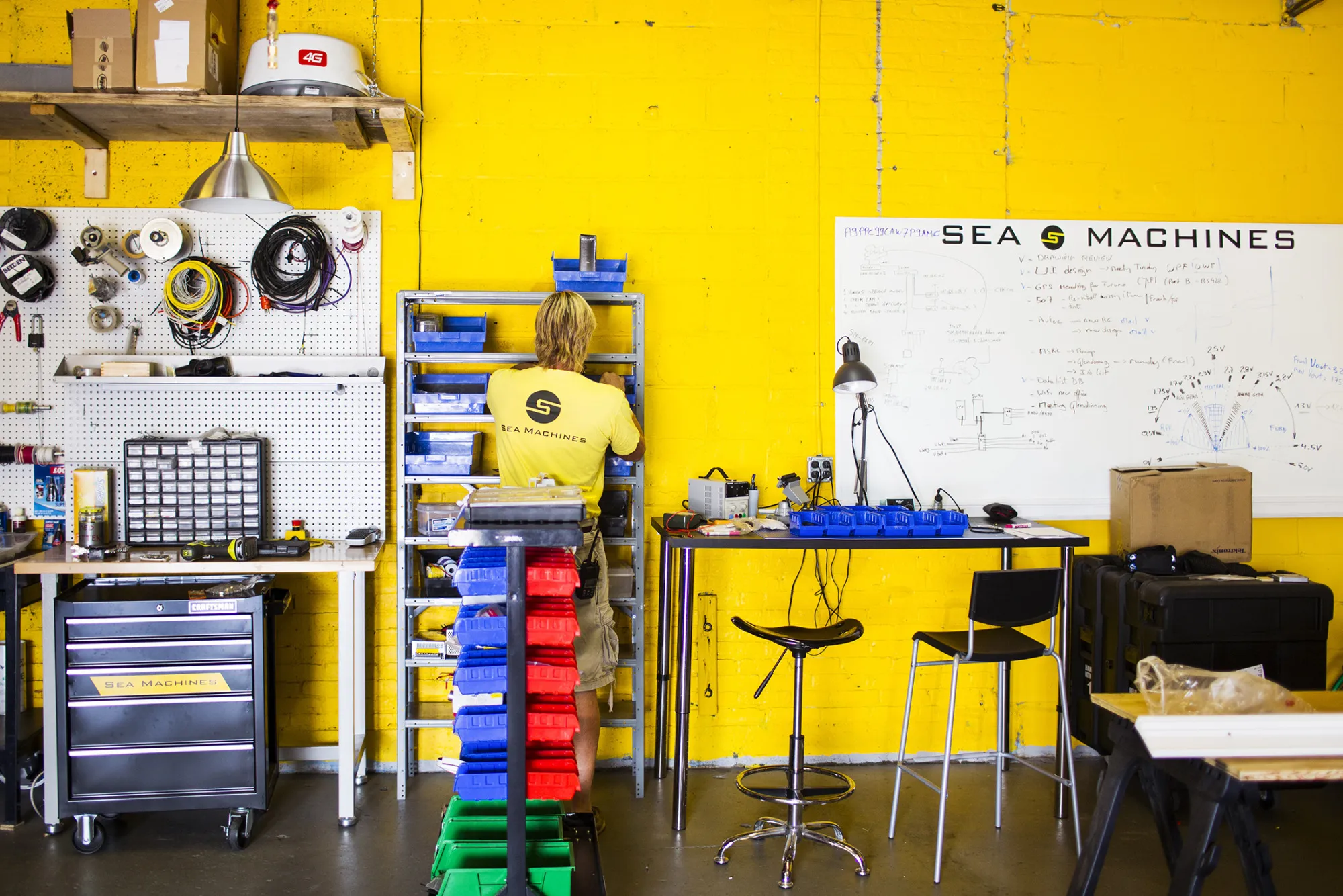 Sea Machines在波士顿港船厂和码头的工作空间。摄影师:亚当·格兰茨曼,彭博社当Marino和Ibn Seddik将Steadfast驶回码头时,另一位机器人船培训师迈克尔·本杰明驶过他们身边。本杰明是麻省理工学院的研究科学家,他在当地水域经常出现。他的海洋自主项目是该校机械工程和计算机科学系的联合努力,成为波士顿蓬勃发展的自动驾驶船场景的一种平衡。本杰明帮助工程师在初创公司找到工作,并运行一个对许多自主海洋车辆至关重要的开源软件项目。