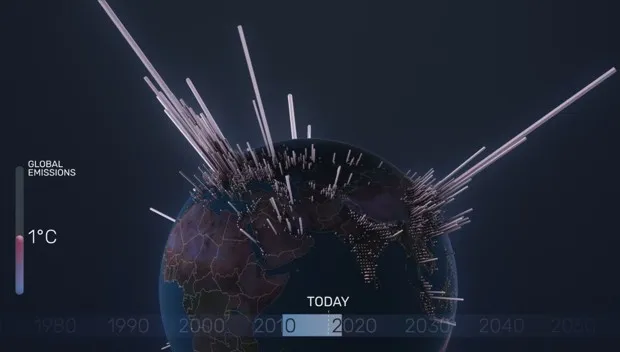 最坏情况的可能性有多大,这种情况在这个可视化中描绘的正逼近我们?可视化的创作者认为,一些当前的损害将会持续。但他们也有一些乐观的理由。“在本世纪下半叶将二氧化碳排放减少到零,可以通过果断的、全球范围的减排政策和努力来实现,”克里格勒说。“如果世界主要排放国和大国充分拥抱,巴黎协定可以成为这一发展的重要[催化剂]。但正如我们在电影中所说,行动的时刻就是现在。”