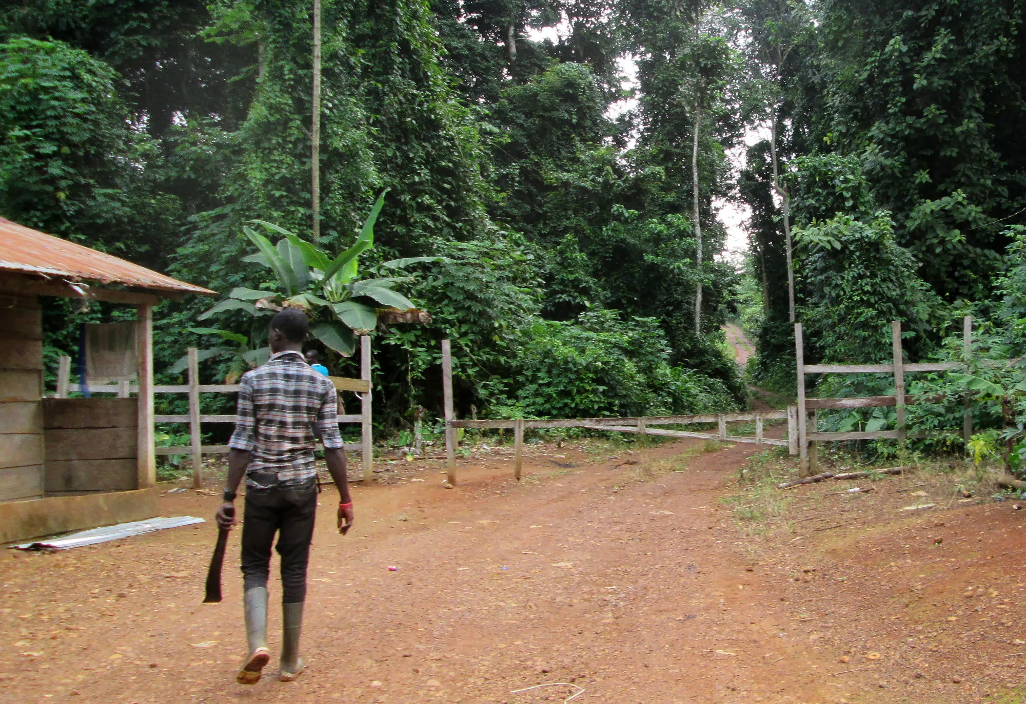 一位可可农民在加纳雅卡西村的边境口岸附近走动。