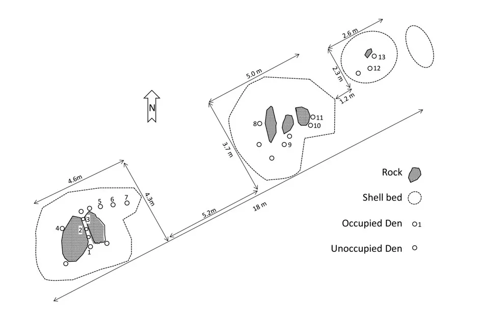章鱼并不仅仅是漂向看起来安全的岩石突起。一旦到达那里,它们用扇贝、蛤蜊和其他它们吃的动物的贝壳堆成堆,然后将这些堆雕刻成巢穴,“使这些章鱼成为真正的环境工程师,”另一位研究人员斯蒂芬妮·钱斯勒指出。这些生物彼此之间的耐心程度大约和海绵宝宝在克拉斯蒂蟹餐厅糟糕的一天里对章鱼哥的耐心一样,开始打斗并把彼此赶出巢穴——这是研究团队尚未完全理解的现象。