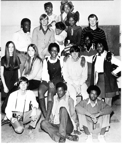 西夏洛特高中学生在1972年一起合影。“我们没有任何严重的问题,如果有的话,我们会解决它们,”当时的凯文·巴里斯(左上)说。哈罗德·L·瓦伦丁/AP如今,学校重新隔离的故事很常见,但历史学家帕梅拉·格伦迪并没有想到自己会讲述这样的故事。1998年,格伦迪决定写一本关于她所在城市北卡罗来纳州夏洛特的学校融合的书,特别是历史悠久的黑人西夏洛特高中。“那是一个政治和文化言辞转向对去隔离失败的批评的时期,”她说。“我想思考去隔离所取得的成就,并讲述一个成功的融合学校的故事。”
