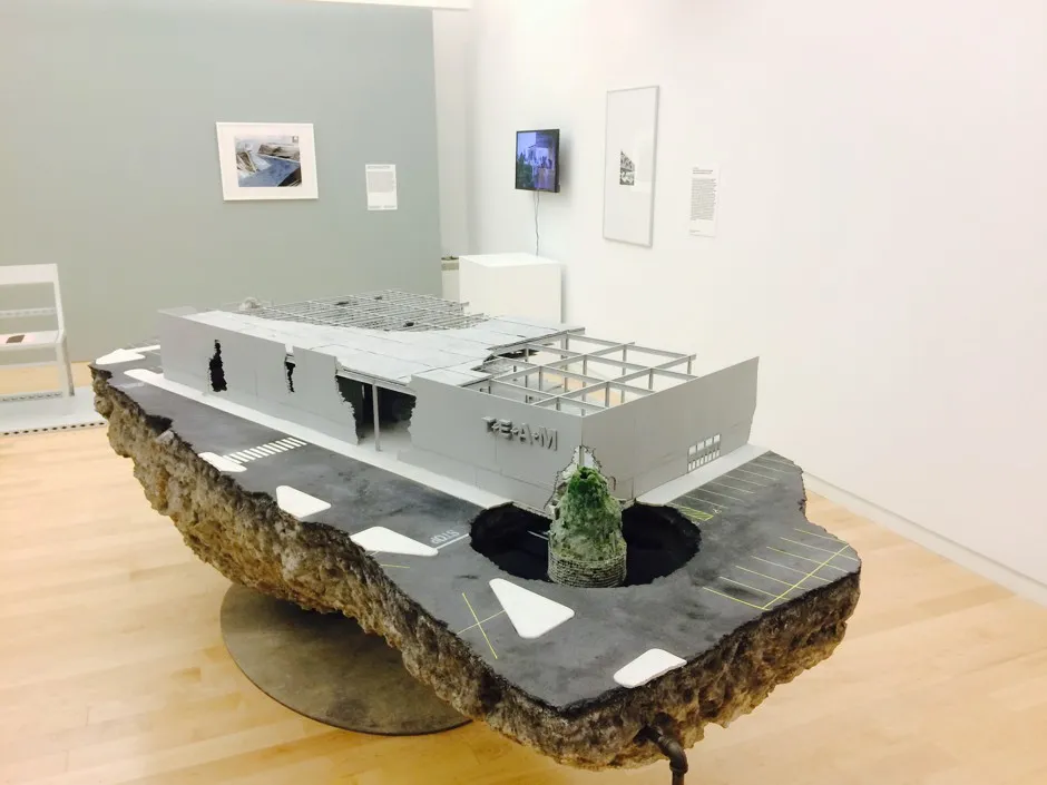 这种聚合建筑的方法在安德鲁·科瓦克斯的“集体生活提案 II(致敬约翰·索恩爵士)”中达到了顶峰。这是一个由在一元商店捡到的废料组成的建筑模型:橡胶鸭、喷雾瓶喷嘴、塑料杯子、圣路易斯拱门的玩具模型。这个展览是科瓦克斯工作的一部分在互联网上策划建筑“B面”图像。“我对[B面]感兴趣的是,因为它们存在于边缘,所以有机会重新思考建筑学的界限可能是什么,”科瓦克斯说。