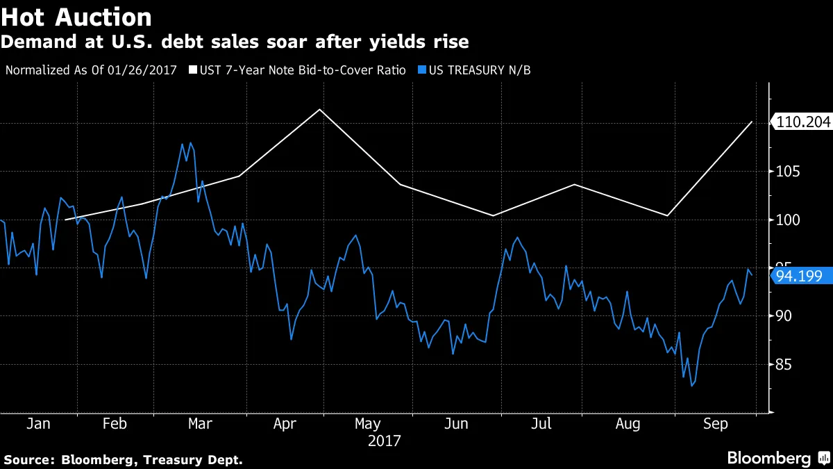交易员们在财政部每月280亿美元的七年期国债拍卖中全力出击。他们的投标金额是所提供金额的2.70倍,这种所谓的投标覆盖比率自2014年开始以来仅有两次超过这一水平。更值得注意的是,这次拍卖是在美联储下个月转向更紧缩的货币政策计划,即量化紧缩之前的最后一次拍卖,该计划将开始缩减其资产负债表资产。是否这标志着一个转折点还有待观察,因为最近几周债券市场疲软的原因依然存在。