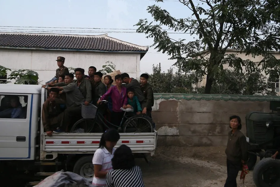 NK新闻一辆皮卡车为士兵、工人和儿童提供前往朝鲜第二大城市咸兴的交通。在缺乏官方公共交通选择的情况下,企业家们正在满足这一需求。