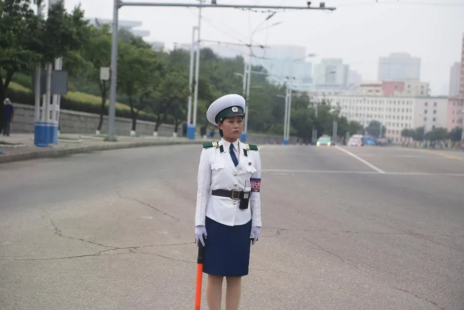 NK新闻平壤著名的“交通女士”使用橙色信号灯指挥交通。交通信号灯于2009年引入城市,但这些穿制服的年轻女性仍在工作。