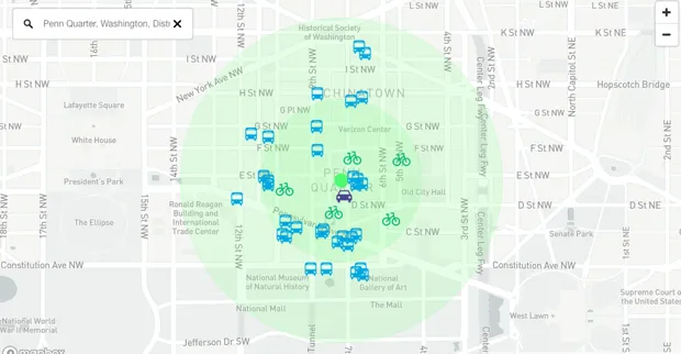 在那里,交通站点稀少,共享单车降至零,而打车服务在可靠性方面变得更加重要;可以推测,一旦交通服务在夜间停止,其权重将会增加。MobilityScore不仅在白天和夜晚之间变化;TransitScreen还在几乎实时地收集来自打车和汽车共享提供商(如Car2Go、ZipCar、Uber和Lyft)的数据。它们车辆的可用性,几乎精确到每一刻,也在这里反映出来。