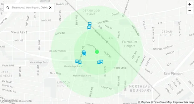 MobilityScore/TransitScreen但Penn Quarter的评分绝不会降到62,这是位于远离市区的Deanwood,在Anacostia河东侧和地区东北边界附近的这个地方白天的评分。在那里,交通情况如下:
