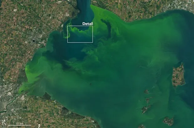 加拿大和美国之间的大湖水质协议在70年代抑制了大部分污染,但近年来藻类水平又逐渐上升,部分原因是农业实践继续允许肥料渗漏。由此产生的藻类暴发杀死海洋生物,每年造成超过$8000万的渔业和旅游活动损失,并让饮用水管理者感到紧张。2014年一个显著的藻类暴发使得托莱多告知50万人不要饮用自来水,因为煮沸无法消灭微囊藻毒素。今年到目前为止,藻类的浓度并没有增长到需要在当地社区发布这样的警告。