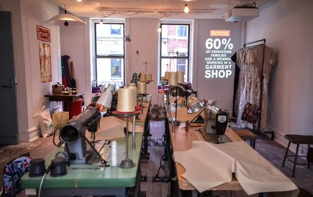 “同在一屋檐下”打破了博物馆以往通过展览讲述单一家族故事的常规。尽管每个家庭都住在自己的公寓里,但博物馆的三楼已被改造成三者的融合。在这里,游客可以走进埃普斯坦家女儿的卧室重建,并进入家庭餐厅,然后进入罗米尼塔·萨埃斯-维莱斯重建的厨房和客厅。展览的最后两个房间是黄氏兄弟姐妹的卧室和一个设计成服装厂的空间。这些工厂是连接三个家庭的线索之一——每个家庭的女家长都在服装行业工作。这个空间充满了互动装置:缝纫机上附有iPad,播放女性讲述她们在工厂工作的经历的视频,还有碗和电饭煲在触碰时播放录音。