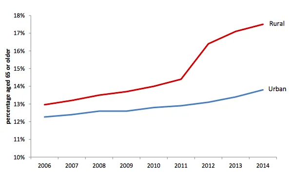 彭博社城市实验室麦格理的新总部被称为“小黄人”阿根廷毒品贩运热点谋杀案激增在一个年轻的城市里,市长的标志性政策是学校午餐机器人出租车对公共交通没有好处这似乎主要是因为随着小城镇的缩小,留下来的人比平均水平更显得苍老——老年美国人占农村人口的17%,而城市为13%,全国为14%。他们在农村人口中的比例稳步增长,就像整体一样。这些人是否能够成功“在原地老去”在一定程度上取决于他们的出行能力,尤其是在汽车不再是选择的情况下。70岁后,驾驶执照会减少,健康状况的累积会妨碍一个人控制车辆的能力。