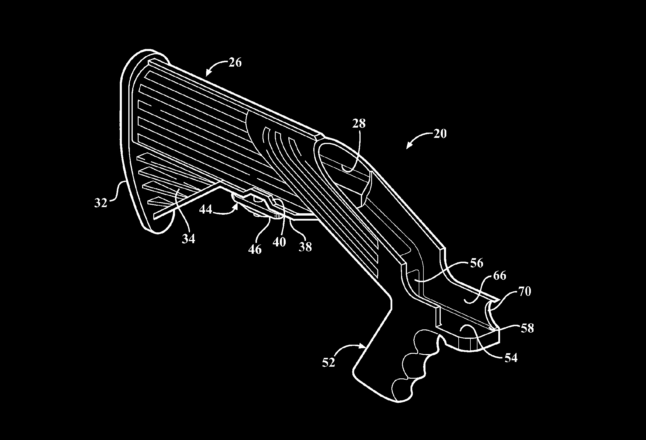 来自专利 #8474169(撞击枪托)的图纸,发明者是 Slide Fire Solutions LP 的所有者杰里迈亚·科特尔。