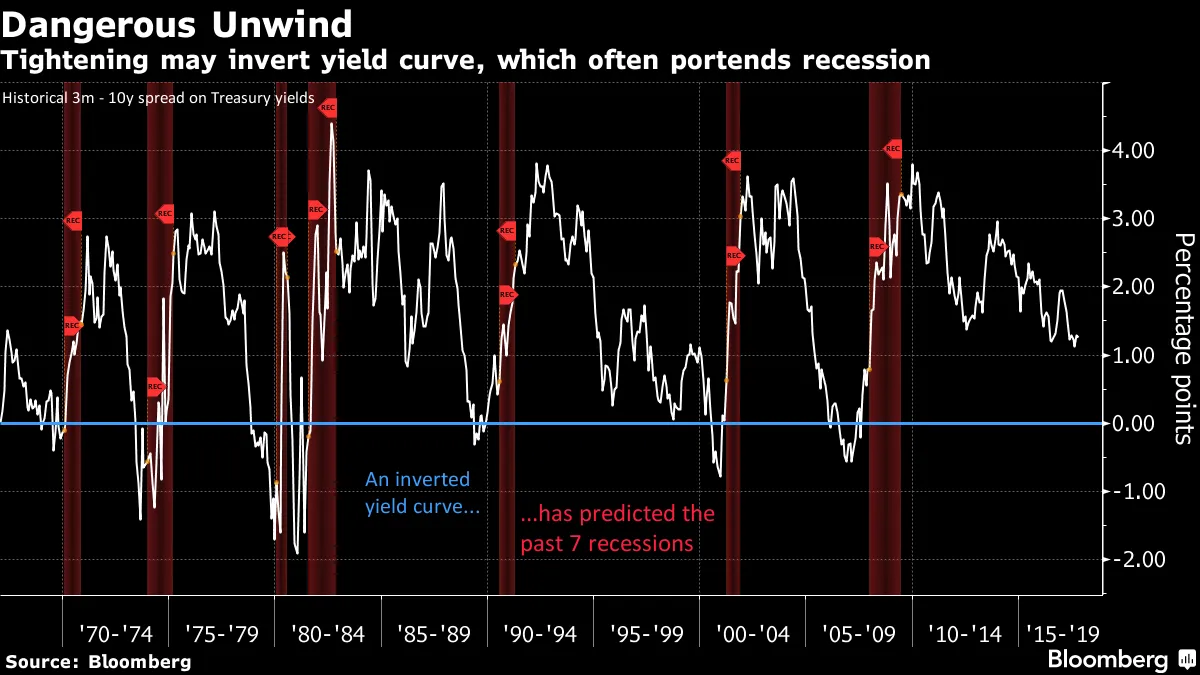 彭博社商业周刊谁认为中国不是经济强国?中国2024年印刷杂志复兴家得宝的12英尺骷髅催生了一个巨型万圣节装饰产业加利福尼亚州的新木材经济正在缓慢扎根**美联储是否犯了一个大错误?**美联储9月19-20日政策会议的会议纪要于周三发布,显示官员们对抑制通胀的力量是持久的还是暂时的存在分歧。尽管存在争论,中央银行当时决定重申其计划在今年12月再加息一次。如果美联储坚持这一计划,并且预计2018年将加息三次,越来越多的有影响力的债券投资者表示,政策失误的潜在风险显著上升。周三,长期国债上涨,导致所谓的收益率曲线收窄。自1990年以来一直看涨债券的霍辛顿投资管理公司的首席经济学家拉西·亨特表示,如果美联储坚持其加息预测,曲线甚至可能会倒挂,据彭博新闻的布莱恩·查帕塔报道。收益率曲线倒挂是显著的,因为它是经济衰退的可靠前兆。“我们在进一步行动中必须小心,”达拉斯联储主席罗伯特·卡普兰在8月17日德克萨斯州卢博克的一次活动中表示。“如果曲线变平或倒挂,这在历史上一直是”经济麻烦的信号。