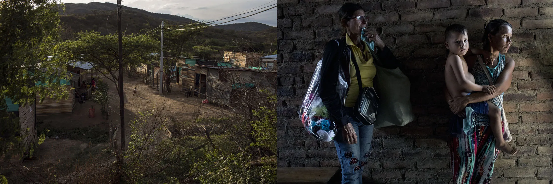 左侧是一个在哥伦比亚的贫民窟,委内瑞拉人越过边界后找到了庇护;一位母亲和孩子每天过境领取来自教会慈善机构Casa de Paso的食物。摄影师:尼科洛·菲利波·罗索/彭博社“你感觉就像水淹到耳朵,”43岁的冰淇淋销售员阿雷利斯·帕拉在烈日下坐在行李上,等待在哥伦比亚移民办公室外。“我再也受不了了。”