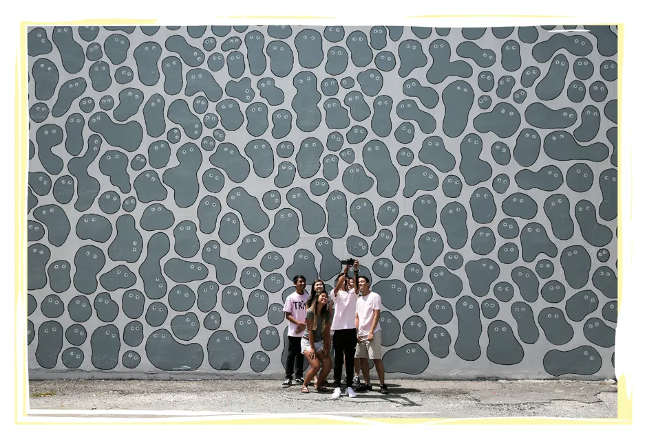 一群人在劳恩代尔艺术中心停下来拍自拍。伊丽莎白·康利/城市实验室这 劳恩代尔艺术中心 *(4912 Main Street)*也是一个与艺术互动的好地方。“劳恩代尔是一个艺术空间,委托艺术家在面向繁忙的主街的侧墙上绘制壁画,”丹尼斯说。“每天都有成千上万的人经过那面墙,”丹尼斯补充道,“你会看到人们跳下车来在那儿与壁画合影。”