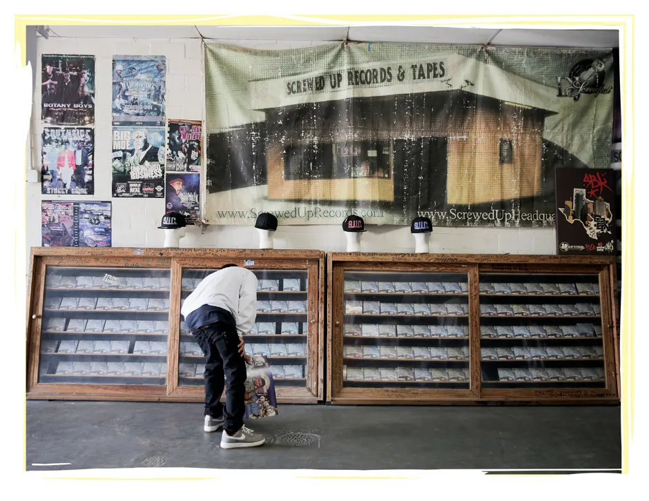 在Screwed Up Record & Tapes翻阅CD库存伊丽莎白·康利/城市实验室丹尼斯还推荐听DJ Screw的混音带,他是当地的传奇人物,创造了“切割和扭曲”的音乐,这是一种在90年代在城市中流行的浓稠、放慢的说唱风格,至今仍部分定义着这座城市的声音。“如果你想想其他的嘻哈音乐,它往往是相当活泼和快速的,以让人们跳舞,”她说,“但DJ Screw的天才在于他能够从城市的环境中提取出这种奇怪的节奏,然后放慢速度,仍然让你跳舞。”丹尼斯建议你去Screwed Up Record & Tapes(3538 W Fuqua Street),在那里你仍然可以找到混音带。