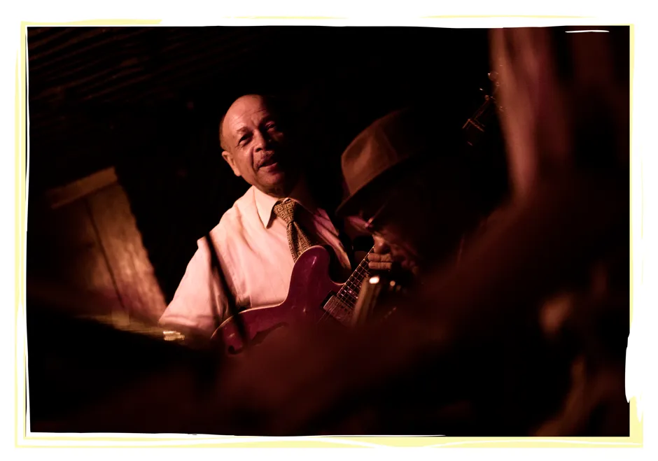 库尔利·科米尔与他的乐队在银拖鞋演出,这是休斯顿第五区的一个现场音乐场所。伊丽莎白·康利/城市实验室“银拖鞋 (3717 Crane Street) 是Z.Z.希尔的歌曲‘乡村蓝调’的典范,”丹尼斯说,提到这位老派德克萨斯州布鲁斯音乐家。“它藏在第五区北侧的一条偏僻街道上,由库尔利和多萝西·科米尔拥有。库尔利弹吉他,他的妻子多萝西负责调酒,并与每个人打招呼,确保他们过得不错,”她说。“一走进来,你就知道你是在为自己做一件好事。”而且,这是自带酒水的地方。