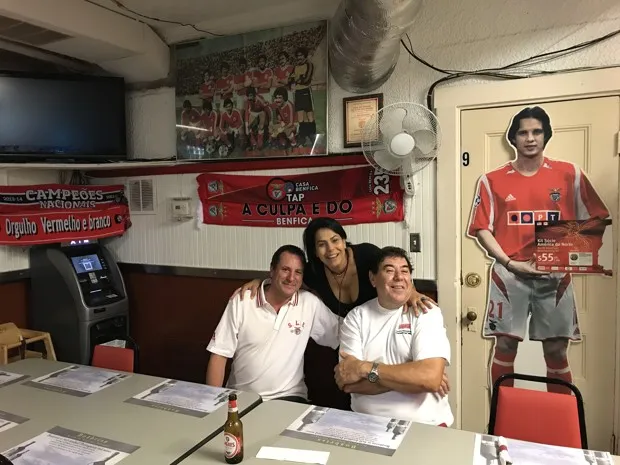 当天晚些时候,哈特福德本菲卡之家副主席阿尔贝托·布拉加与妻子吉娜坐在一起,观看着一个大屏幕上的足球精彩片段,场地装饰着用蕾丝缝制的本菲卡标志、对本菲卡偶像尤西比奥的致敬,以及一个复杂的木雕,三只鹰环绕着俱乐部徽章。