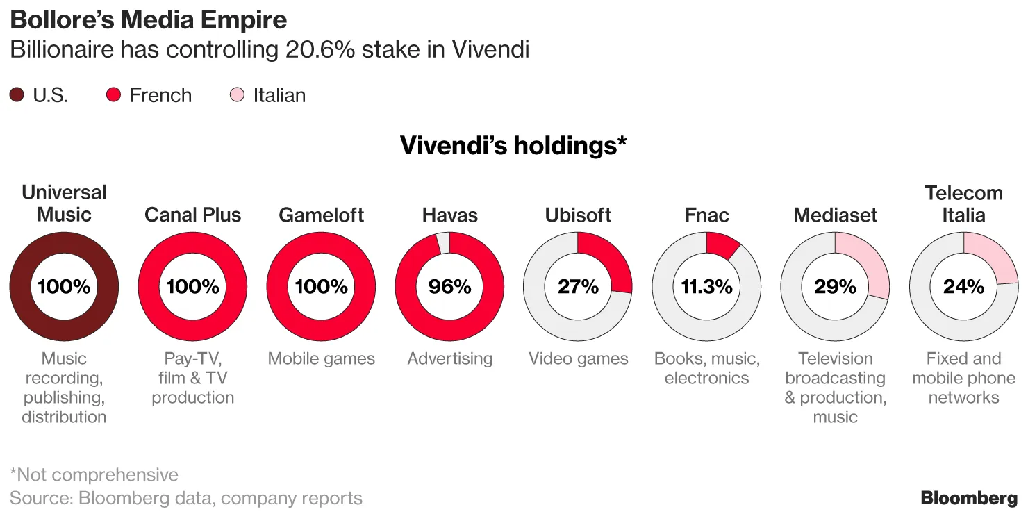 尽管如此,总部位于巴黎的维旺迪与意大利政府及前总理西尔维奥·贝卢斯科尼的家族在维旺迪收购的前电话垄断公司意大利电信公司和贝卢斯科尼广播集团Mediaset SpA的股份上展开了争斗。在法国,维旺迪对全球第三大独立游戏出版商育碧娱乐公司的进攻遭到了控制该公司的家族的反对。