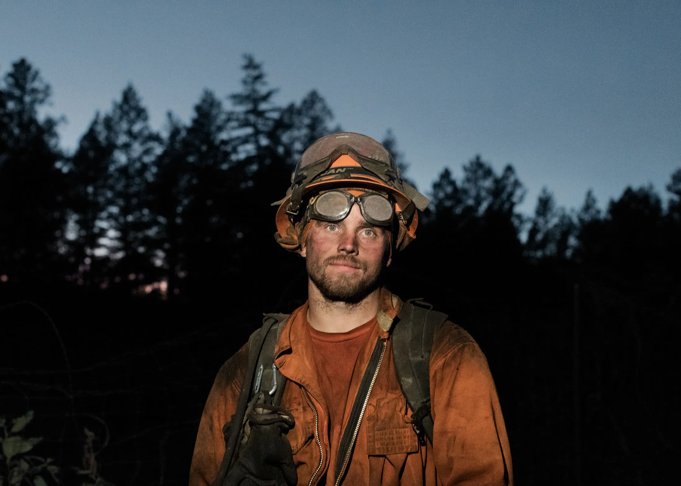 加州囚犯消防员特雷弗·科诺普卡在作业后。摄影师:Philip Montgomery 为《彭博商业周刊》拍摄