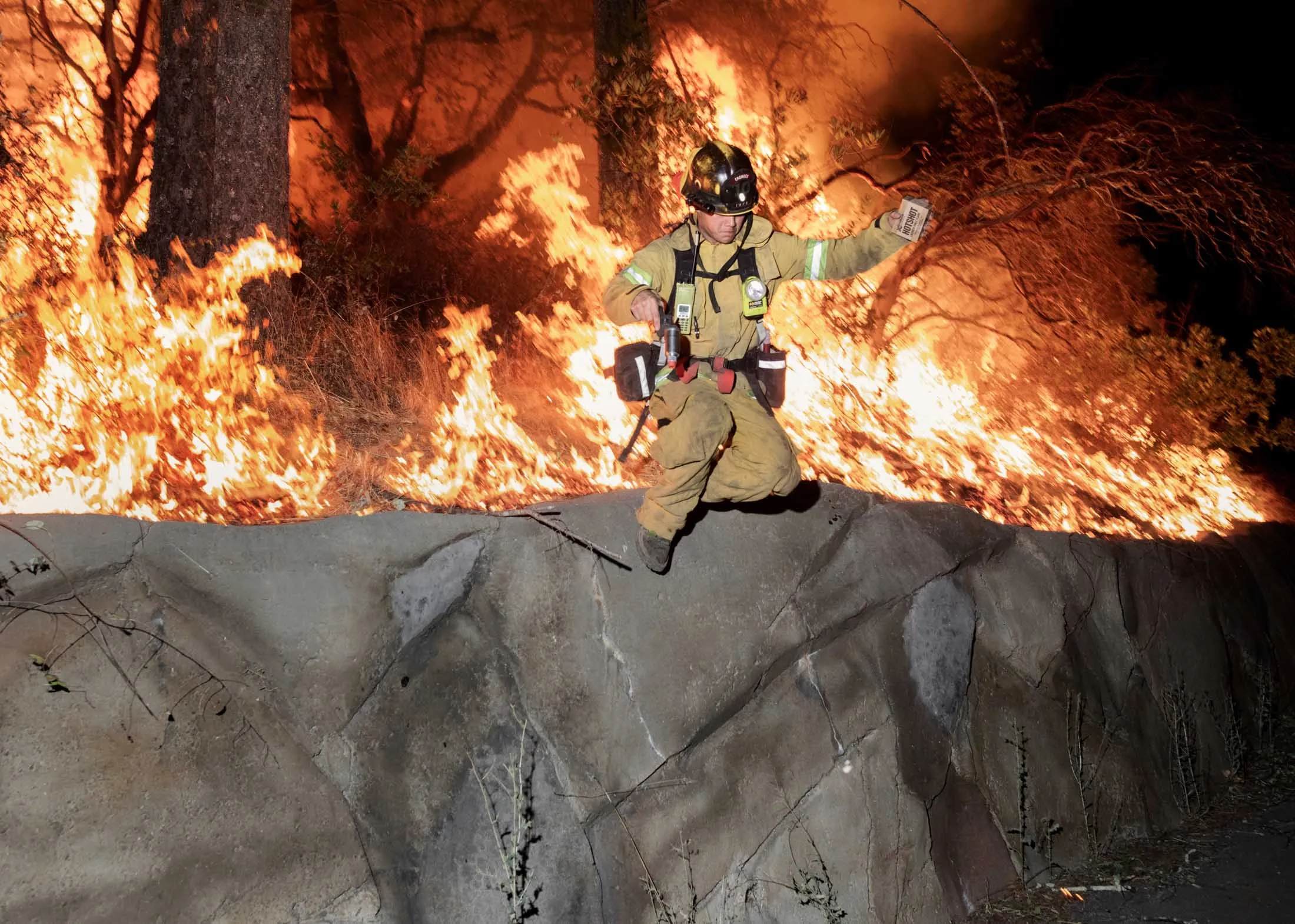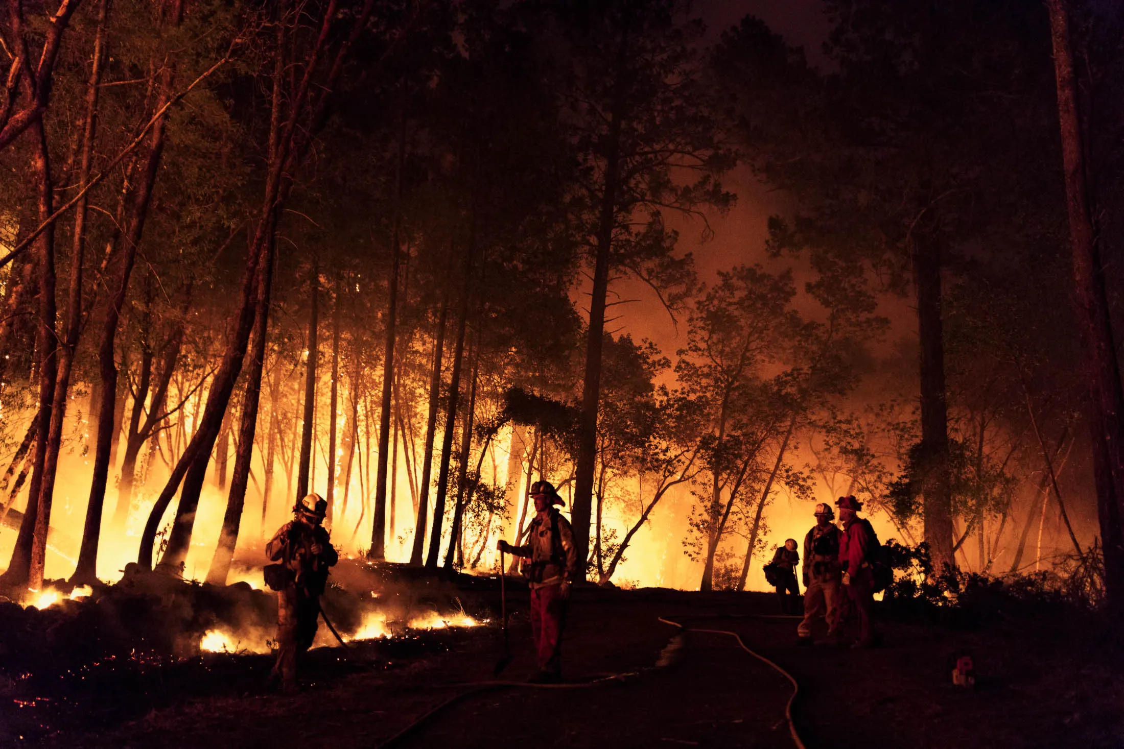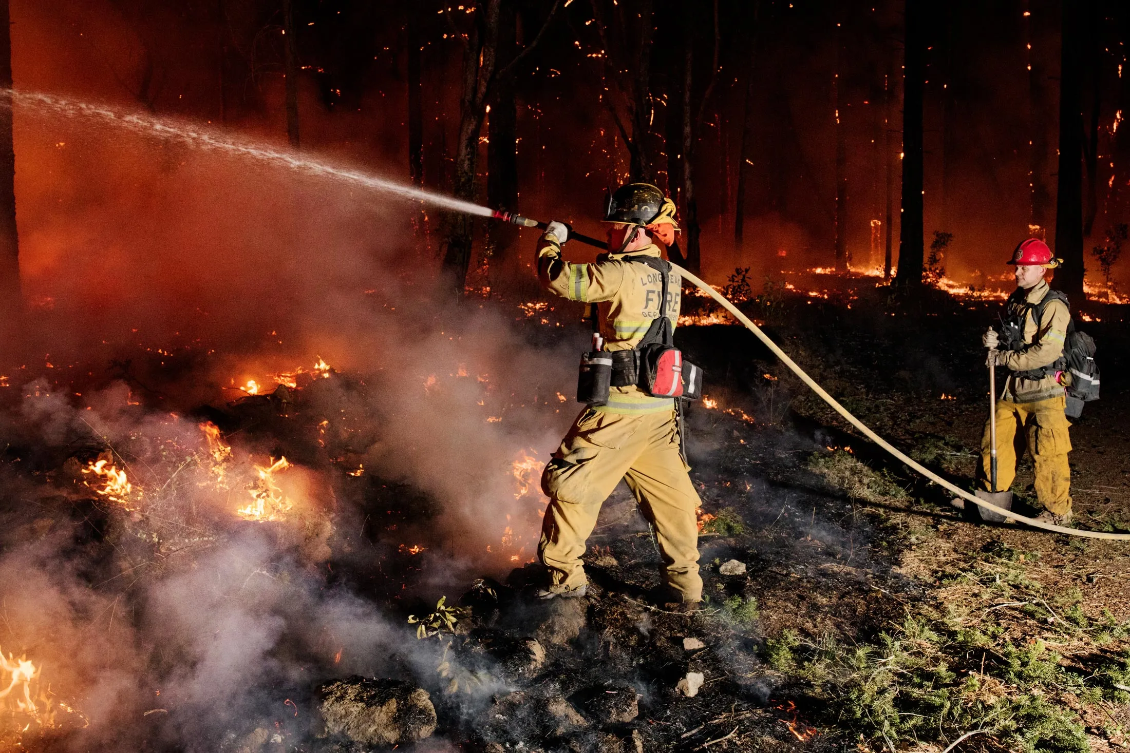 加州消防员在回火行动中。摄影师:Philip Montgomery 为彭博商业周刊