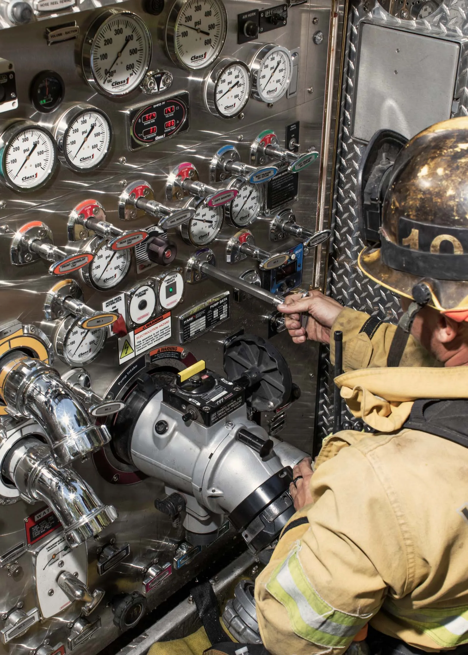 一名消防员在回火作业期间与长滩消防局一起工作。摄影师:Philip Montgomery 为《彭博商业周刊》拍摄