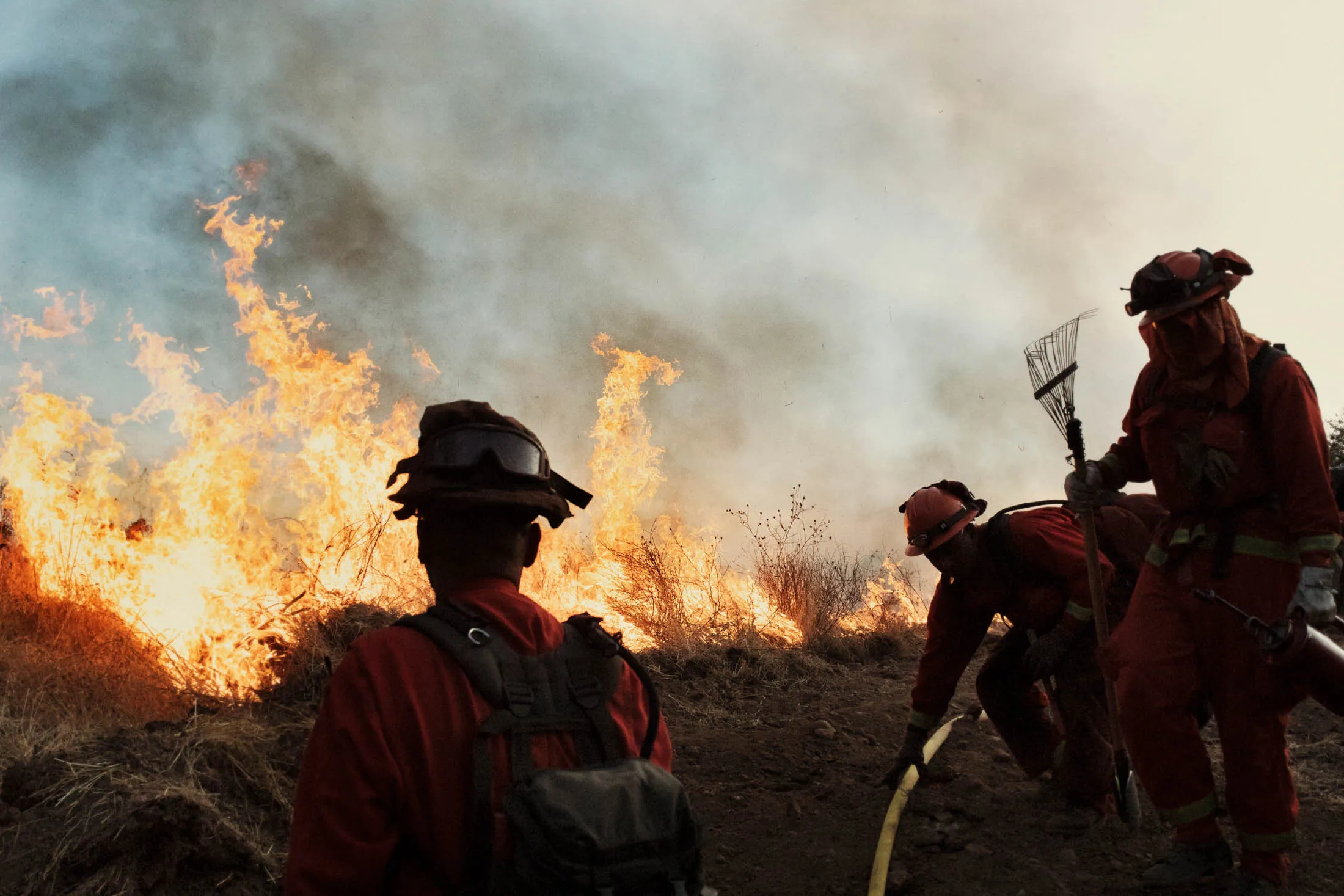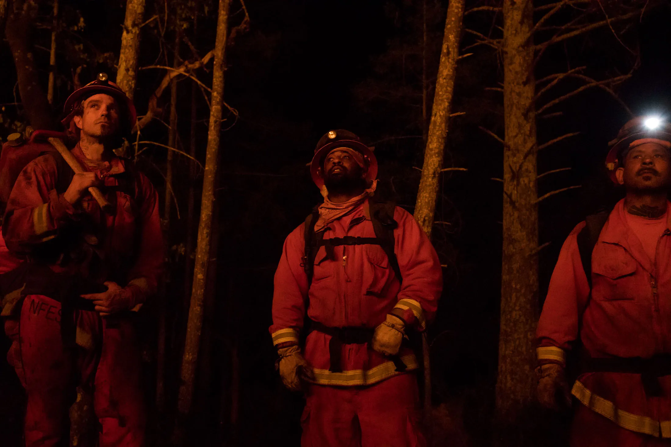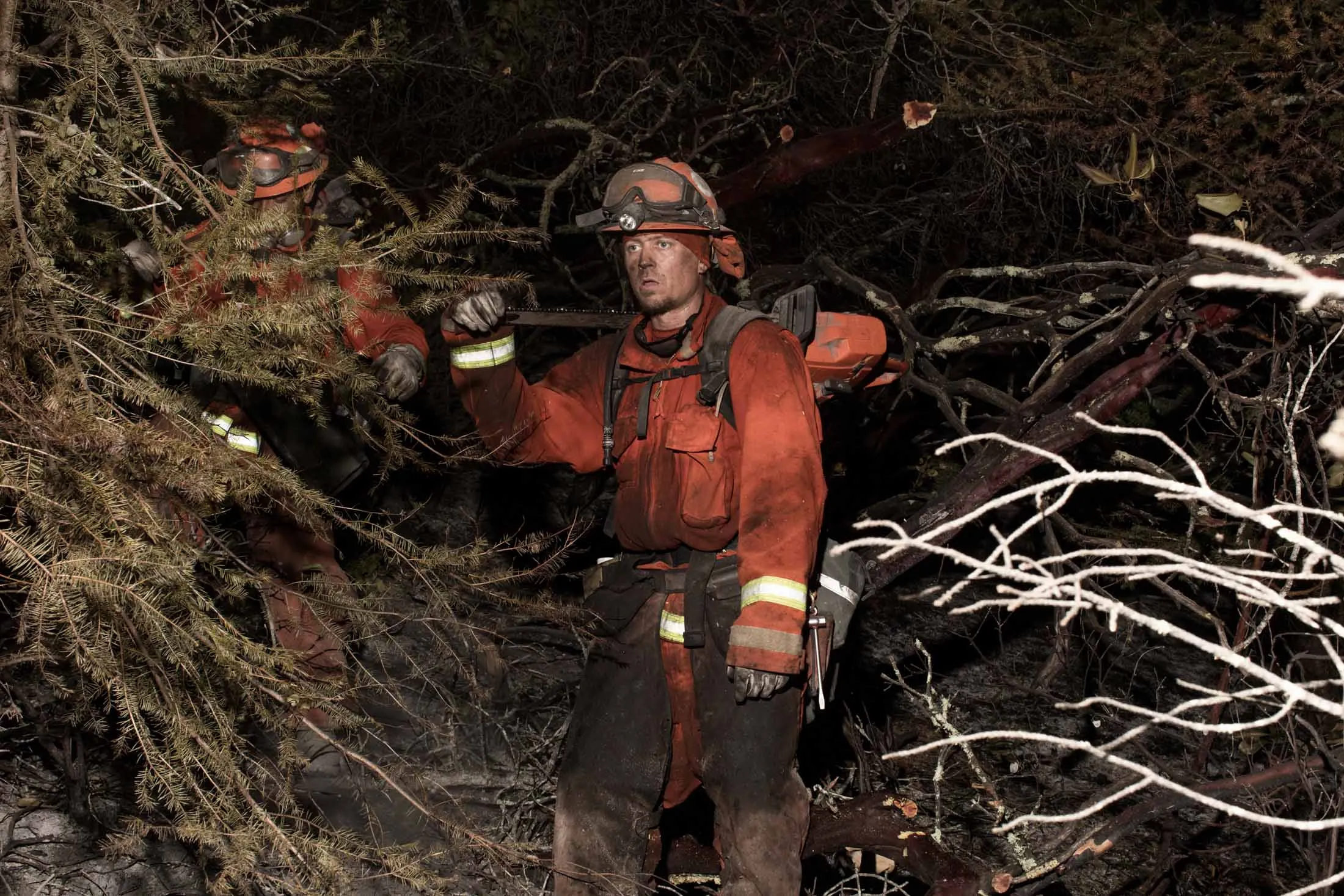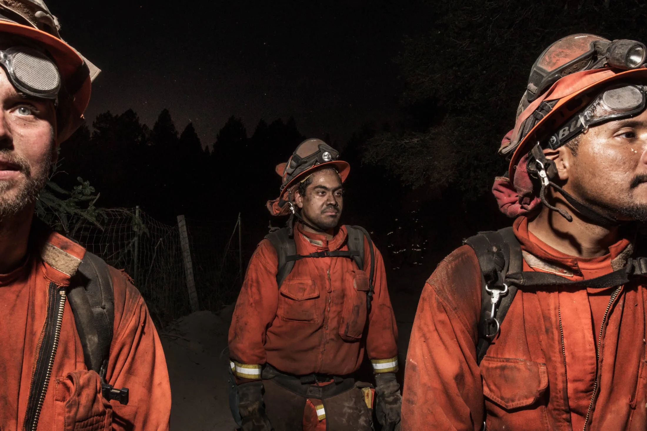 加州囚犯消防员在行动后。摄影师:Philip Montgomery 为彭博商业周刊