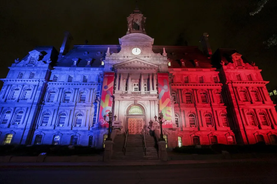 蒙特利尔市政厅被法国国旗的颜色照亮——但文化的融合并不总是像许多人所期望的那样简单。路透社当塞西尔·拉扎尔蒂格-夏尔蒂埃第一次访问蒙特利尔,魁北克时,并不是一见钟情。她和丈夫期待着他们的第一个孩子,渴望离开巴黎去一个“安静一点”的地方,因此他们在蒙特利尔度过了三个黑暗寒冷的星期。“这里并不美丽,对我来说似乎太美国化了,”她说。尽管如此,她还是被这座城市的文化混合所吸引,吸引着来自世界各地的人们。她和丈夫决定尝试一年。