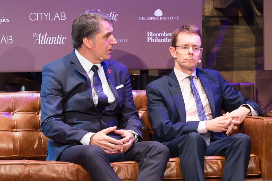 史蒂夫·罗瑟姆,利物浦城市地区市长,在巴黎的CityLab与西米德兰兹市市长安迪·斯特里特交谈。梅兰妮·利·威尔伯将更多权力下放给英国的城市和地区是否有助于遏制政治不满的潮流?今年早些时候,英国采取了重要步骤,通过给予六个大都市地区——包括曼彻斯特和利物浦——他们的首位 直接选举的市长,来赋予其地区更多的直接控制权,加入了2000年设立的伦敦市长,打破了英国的政治传统。