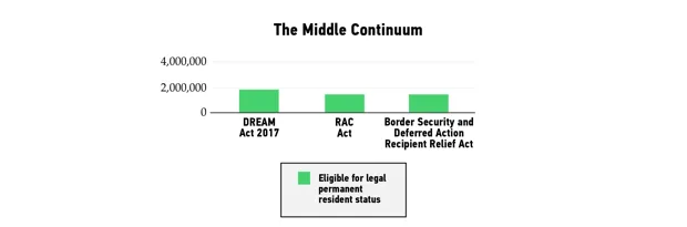 另外三个——《梦想法案》、《承认美国儿童法案》和《边境安全与延期行动受益人救济法案》——在某种程度上处于中间连续体上。