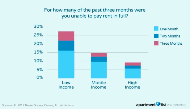 彭博社城市实验室阿根廷毒品贩运热点谋杀案骤降在年轻人的城市中,市长的标志性政策是学校午餐机器人出租车对公共交通没有好处繁荣的剑桥暴露了英格兰日益扩大的财富差距除了确定驱逐的频率(和威胁)外,公寓列表还试图量化非正式驱逐的类似隐蔽事件,以及每月租赁不安全的健康性质。调查询问在过去三个月中的至少一个月,某个租户是否无法全额支付租金。回答“是”的五分之一并不一定是在法律的强制下被迫离开公寓,但他们确实面临严重后果。“如果你的租金给你的家庭带来了不当负担,让你每个月都难以支付账单,这将导致你削减其他必需品,如食品、医疗保健和交通,”报告作者克里斯·萨尔维亚提说。