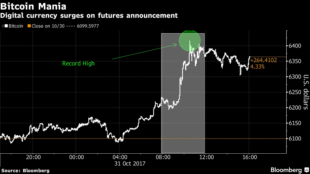 比特币,这种被摩根大通的杰米·戴蒙称为“欺诈”的加密货币,以及被黑石的拉里·芬克称为主要被犯罪分子使用的货币,正准备合法化。全球最大交易所的拥有者CME集团表示,计划在年底前推出比特币期货,仅在一个月前否定了这一计划。虽然越来越多的加密货币支持者将这一消息视为行业相对短暂历史中的一个重要时刻,但一些人认为这突显了华尔街的问题。从本质上讲,一个正常运作的衍生品市场可以帮助专业交易员和投资者在不必在可能违反反洗钱和了解客户规则的陌生场所交易的情况下,获取比特币固有的惊人波动性,据彭博新闻的尼克·贝克和马修·莱辛报道。然而,让一些人感到不快的是,像CME这样一个威望卓著的市场运营商正在给予比特币其认可,尽管加密货币缺乏任何监管。对他们来说,CME的决定与促进一个新兴市场无关,而是关于快速赚钱,这让人想起了导致上次金融危机的次贷狂潮。