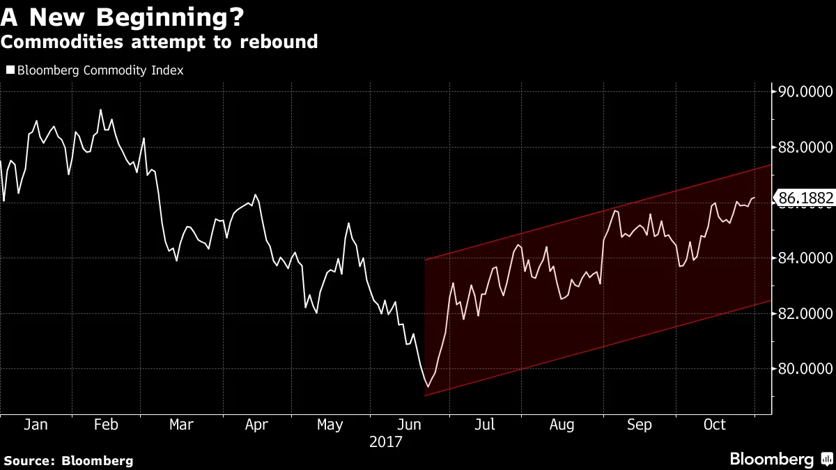 商品正在变动原材料市场在2016年结束了五年的亏损,彭博商品指数上涨了11.4%,这是自2010年以来的首次年度增长。因此,交易员们对反弹在2017年继续持乐观态度。然而,这并没有发生:该指数在前九个月恢复下滑,下降了3.49%。但交易员们再次在低声讨论新一轮反弹的潜力,指数在十月份上涨了2.09%。在过去四个月中,它已经上涨了三次。根据彭博新闻的达金·坎贝尔的报道,这可能是未来日子好转的迹象,高盛从竞争对手那里招聘了一批交易员,以扭转其商品业务的颓势,因为该公司作为上市公司经历了历史上最糟糕的季度表现。十月份商品市场的明星是石油、汽油和其他能源产品。此外,铜、铝和钯等金属也在经历令人印象深刻的上涨。农业产品继续是输家,小麦、玉米和咖啡在市场中领跌。一个例外——至少在十月份——是糖,糖上涨了近9%。对于那些看到糖在全球供应过剩中今年下跌17%的交易员来说,这并没有多少安慰。