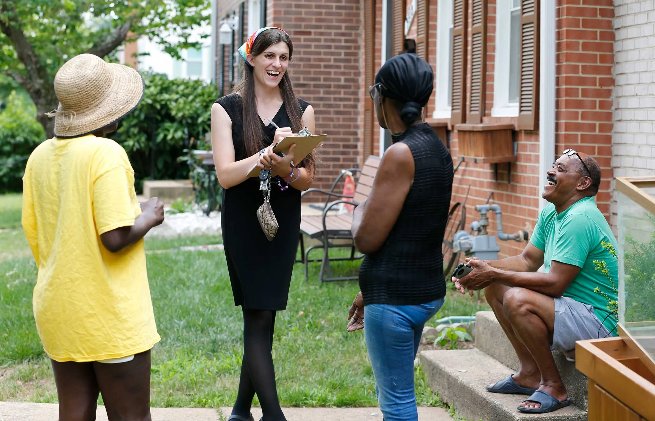 丹妮卡·罗姆,左起第二位,弗吉尼亚州众议院第13区的民主党候选人,在2017年6月21日于弗吉尼亚州马纳萨斯的一个社区进行拉票时与选民交谈。摄影师:史蒂夫·赫尔伯/AP为了接触那些没有投票的人,最好在他们的地盘上与他们见面,并提供足够的诱惑来吸引他们的注意。这就是为什么在九月的一个晚上,MobilizeAmerica的工作人员挤在华盛顿Capital One Arena的Arcade Fire音乐会的后台更衣室里——他们还带来了 一个新的现场组织应用程序,以及 丹妮卡·罗姆,她是第一位竞选弗吉尼亚州众议院的跨性别候选人。