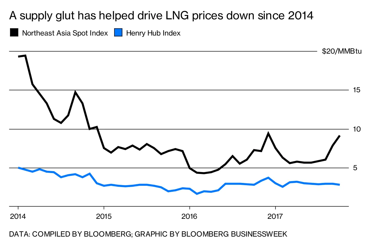 几十年来,全球大多数液化天然气的买卖都由长达20年的长期合同管理。五分之一的合同将在2018年至2020年到期。在接下来的十年中,管理全球80%液化天然气贸易的合同将被重写。目前,液化天然气市场正处于巨大的供应过剩之中,部分原因是过去两年美国出口的出现。这种过剩可能会持续 直到至少2020年,使价格保持低位。