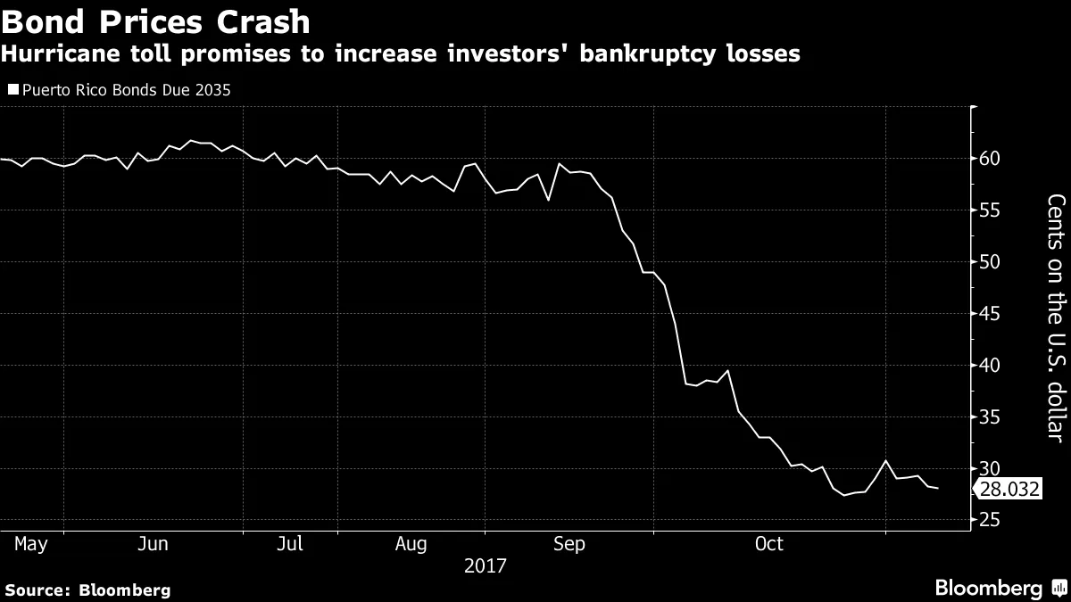 波多黎各债券出现一些交易自玛丽亚飓风袭击以来,岛上的大部分电力系统可能仍然瘫痪,但这并未阻止波多黎各债券的交易。事实上,交易开始变得更加活跃。根据彭博社的米歇尔·卡斯克的报道,波多黎各债务的交易量达到了至少三年来的最高水平,因为该岛寻求多达210亿美元的援助,以帮助维持政府运作和支付公共员工的工资。周一,联邦证券的30天日均交易量达到了4.233亿美元,周二为4.227亿美元。交易量的上升可能并不代表债券持有人在16.8%的指数崩溃中寻求逃离债务的单向交易。事实上,一些知名投资者表示,现在可能是增持波多黎各债券的时机,卡斯克报道。“由于波多黎各一般义务债券价格自3月以来下跌超过40点,交易价格大约为每美元30美分,我们认为估值比过去更具吸引力,”太平洋投资管理公司的市政债券投资组合管理负责人大卫·哈默在公司网站上发布的季度报告中写道。投资者需要考虑波多黎各创纪录的破产所带来的风险,以及风暴——以及联邦政府的反应——对岛屿经济的潜在影响,哈默写道。