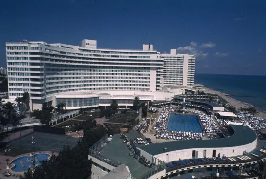 方丹布劳酒店在1968年美联社由莫里斯·拉皮杜斯设计的方丹布劳酒店的弯曲白色大楼,在1950年代和1960年代是魅力的代名词——电影金手指的拍摄地,也是“老鼠帮”的聚集地。它于2005年至2008年进行了翻新和扩建,耗资10亿美元,是佛罗里达州利用联邦历史税收抵免的最大项目。(这些抵免不能用于新扩建,但3.17亿美元的修复工作是符合条件的。)