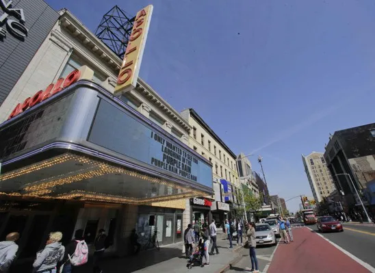 Frank Franklin II/AP阿波罗剧院于1913年建成,最初是一个全白人表演的滑稽剧院,1934年重新开放为面向黑人观众的剧院,成为了世界著名的非裔美国人才能展示场所。2006年,剧院的所有者利用税收抵免进行了一项修复项目,包括恢复外观和招牌,并扩展大堂。