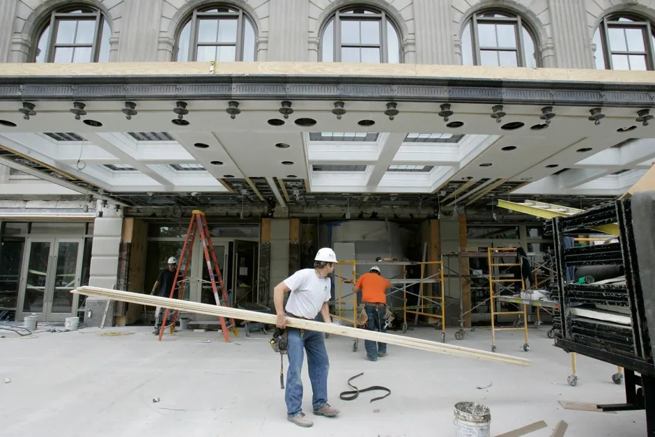2015年正在建设中的旧邮局苏珊·沃尔什/AP没错:在他获得1899年旧邮局的所有权后,他以一种不寻常(且有争议)的公私合营方式从联邦政府租赁该建筑,唐纳德·特朗普将其改造成一家豪华酒店,特朗普组织获得了4000万美元的税收减免。我想他们及时申请了这个减免,真是好事。