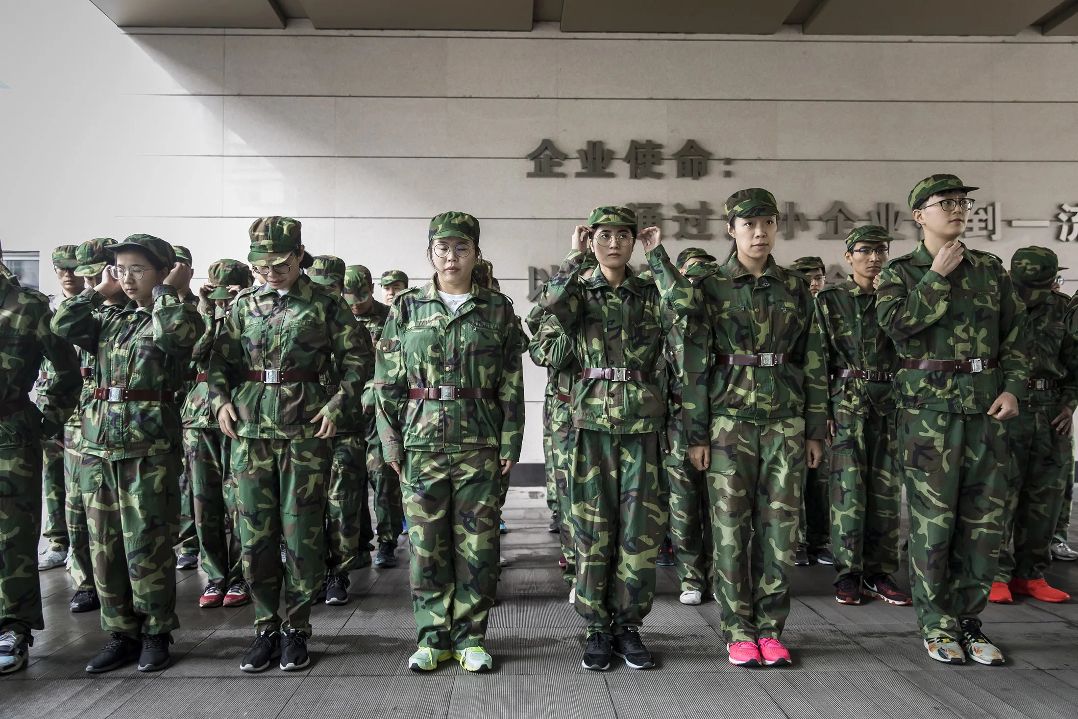 摄影师:Qilai Shen/Bloomberg在台州银行,培训生被要求以闪电般的速度数钱,受到来自人民解放军的前教官的严格训练,并被动员以步兵营的微妙方式追讨失信借款人。