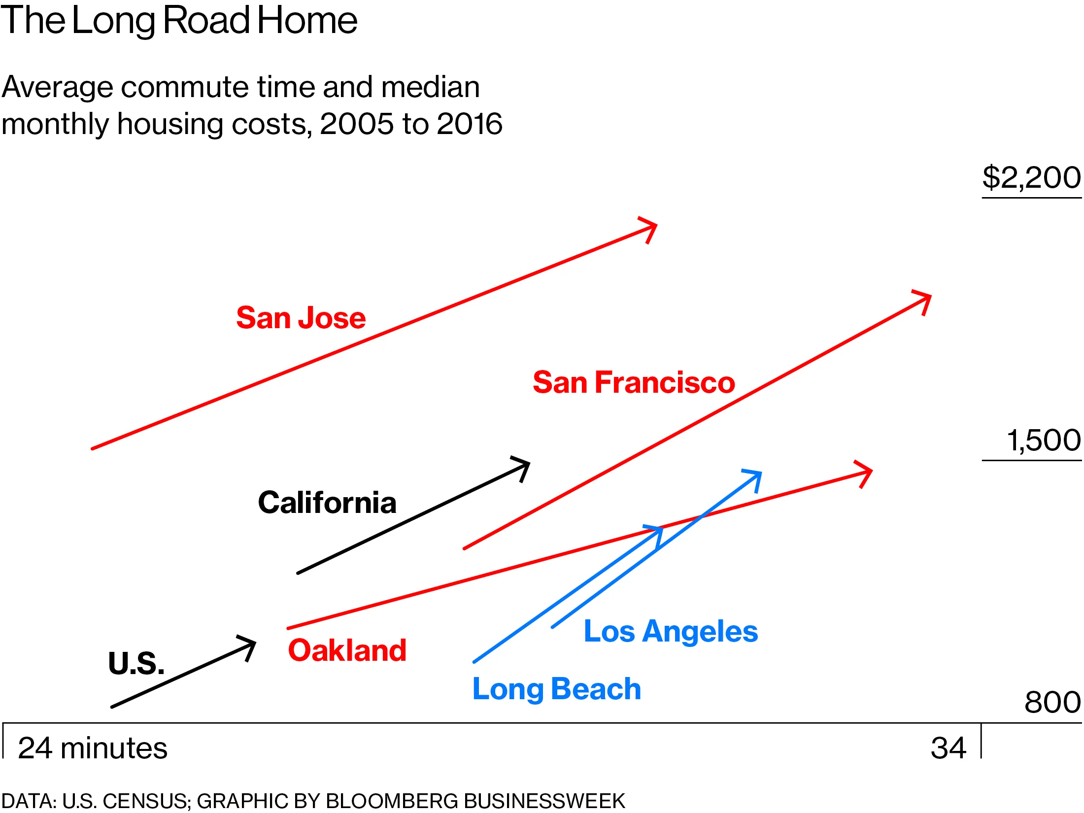 随着像Cabrera这样的居民为了寻找可负担的住房而远离工作地点,该州在气候目标方面的进展正在放缓。根据一份八月报告,这是来自旧金山非营利组织Next 10的最新数据,2015年该州的温室气体排放量下降的速度不到前一年的一半。低油价和缺乏可负担住房促使更多的驾驶,并导致汽车、公交车和卡车的排放增加了3.1%,报告称。人口普查数据显示,2015年加州有超过635,000名工人的通勤时间为90分钟或更长,比2010年增加了40%。