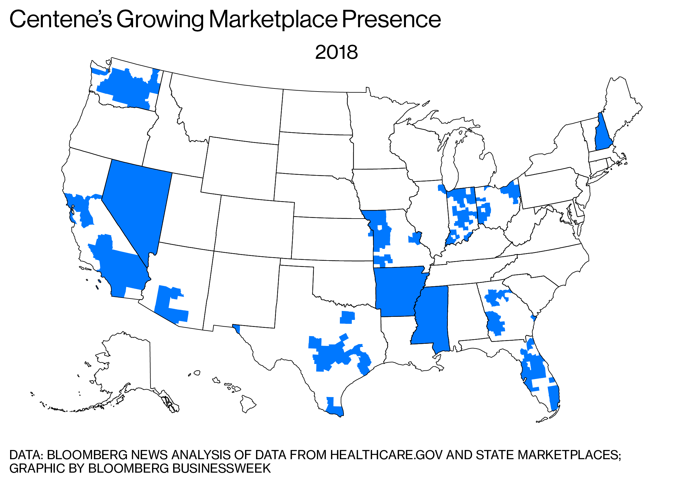 Centene 还表示它将在明年在内华达州提供 ACA 政策,填补那些注定缺乏任何此类保险公司的农村县。它提议在印第安纳州、密苏里州和俄亥俄州的县销售计划,这些地方本来将没有保险。它还将在明年在佛罗里达州、堪萨斯州、德克萨斯州和华盛顿州的新地区销售计划,并且在其他承运人退出后,准备成为整个密西西比州唯一的 Obamacare 提供者。