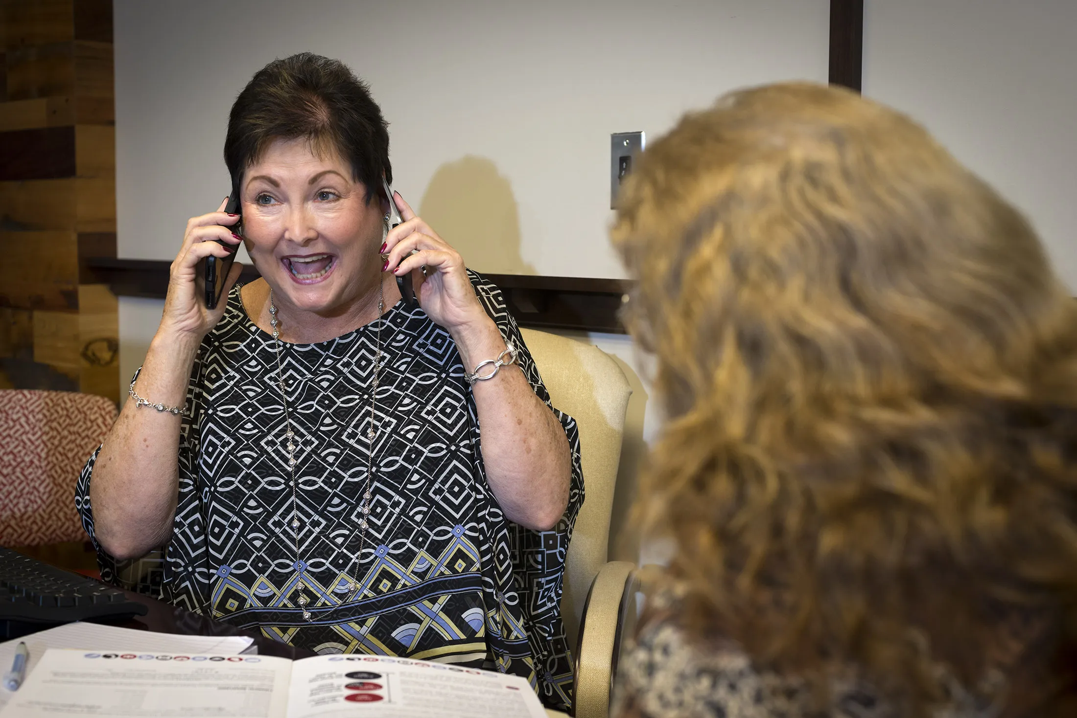 梅丽莎·坎普在试图获取信息以申请菲比·萨姆特的健康保险时,一边 juggling 客户的电话,一边 juggling 自己的电话。摄影师:苏珊娜·拉布为彭博商业周刊十年前,Centene 是几家因限制客户进入医院、医生和药物而受到批评的医疗补助管理公司之一。现在,该公司的策略在乔治亚州等地备受欢迎。“我们非常感激他们来到这里,”InsureGA 的坎普说。 “我们希望他们能赚很多钱并留下来。”