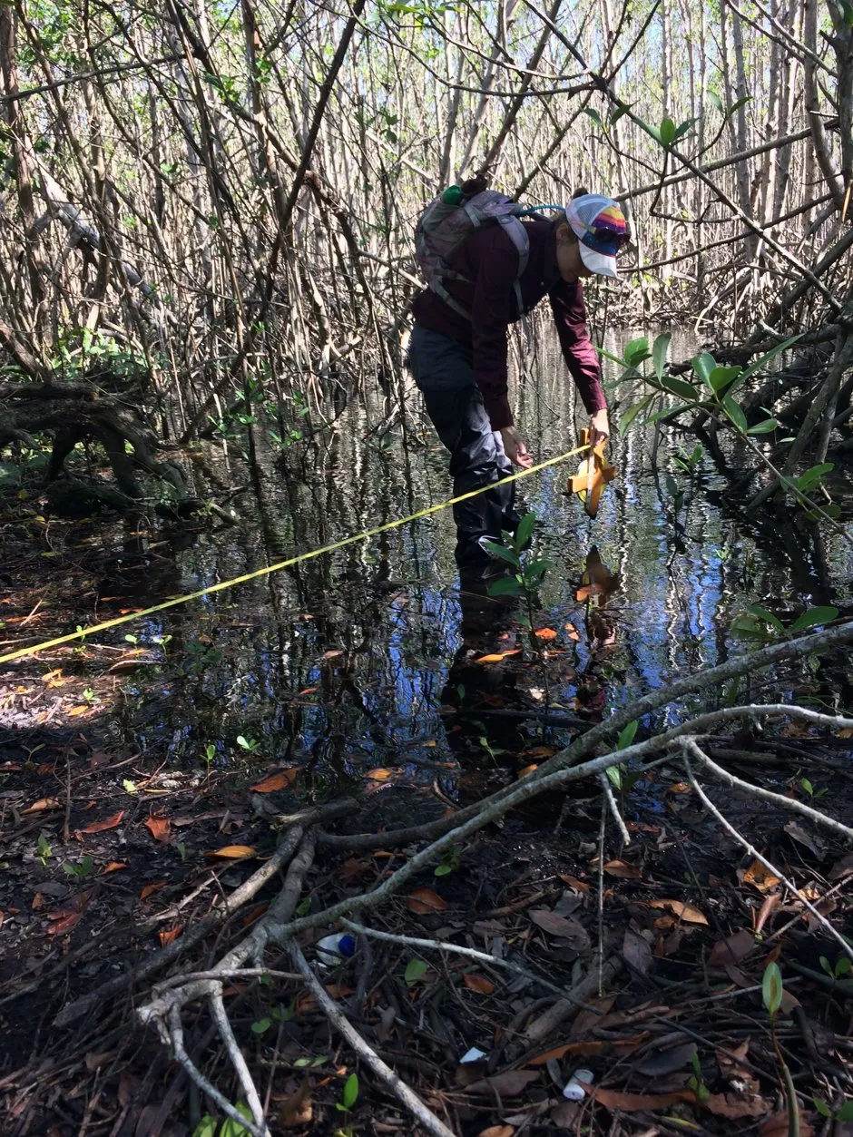 艾尔斯-里格斯比在一个垃圾堆上测量水位。杰西卡·利·赫斯特/城市实验室自古以来,人类和生物在如今的佛罗里达州居住时,就一直在留下他们生活的痕迹。芬恩说,来去匆匆的候鸟和不断更换的移民可能会受到严重的历史遗忘症的困扰。但这些分散的遗址证明了在海岸线被玻璃和钢铁高楼点缀之前的数千年。