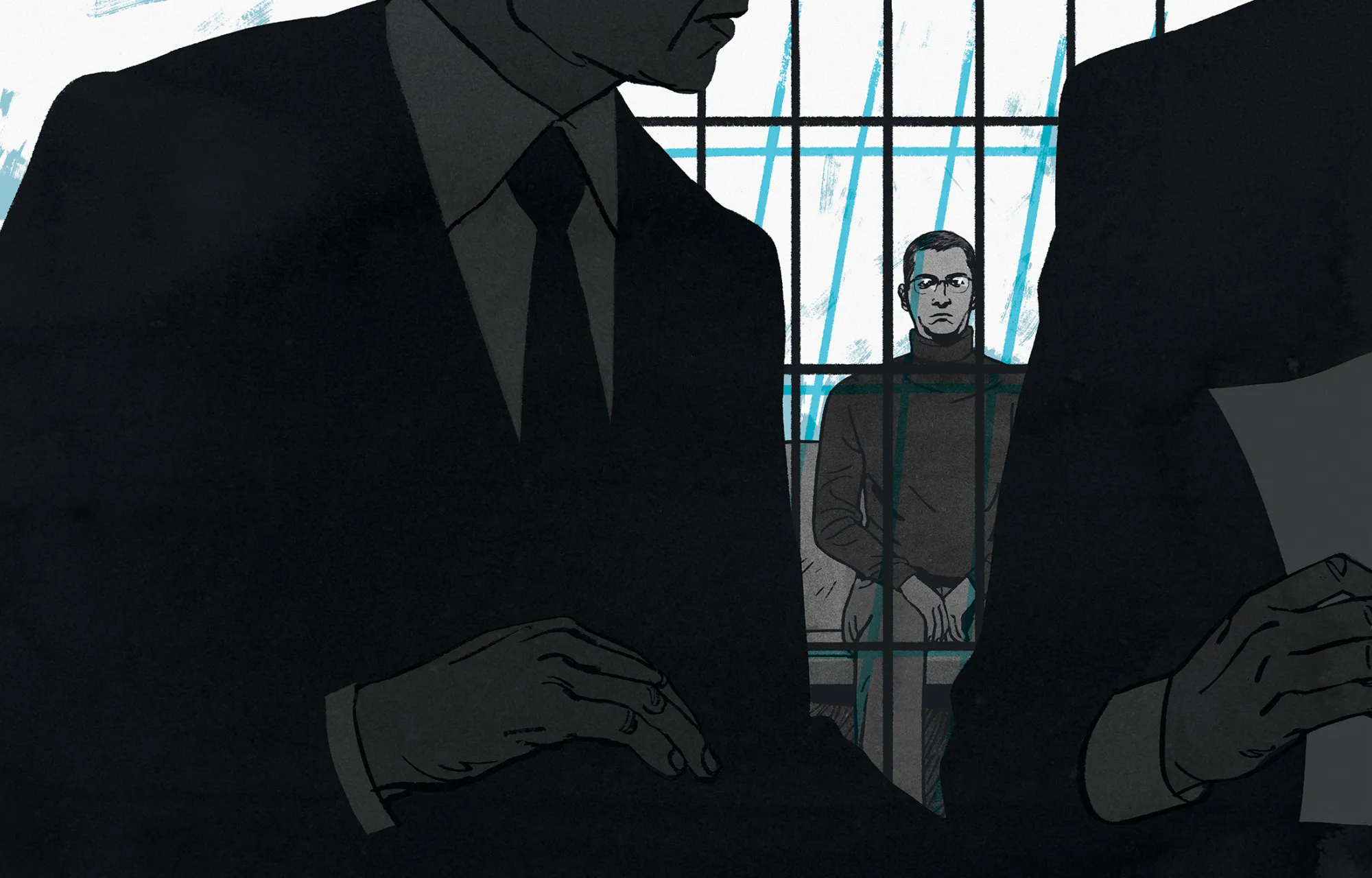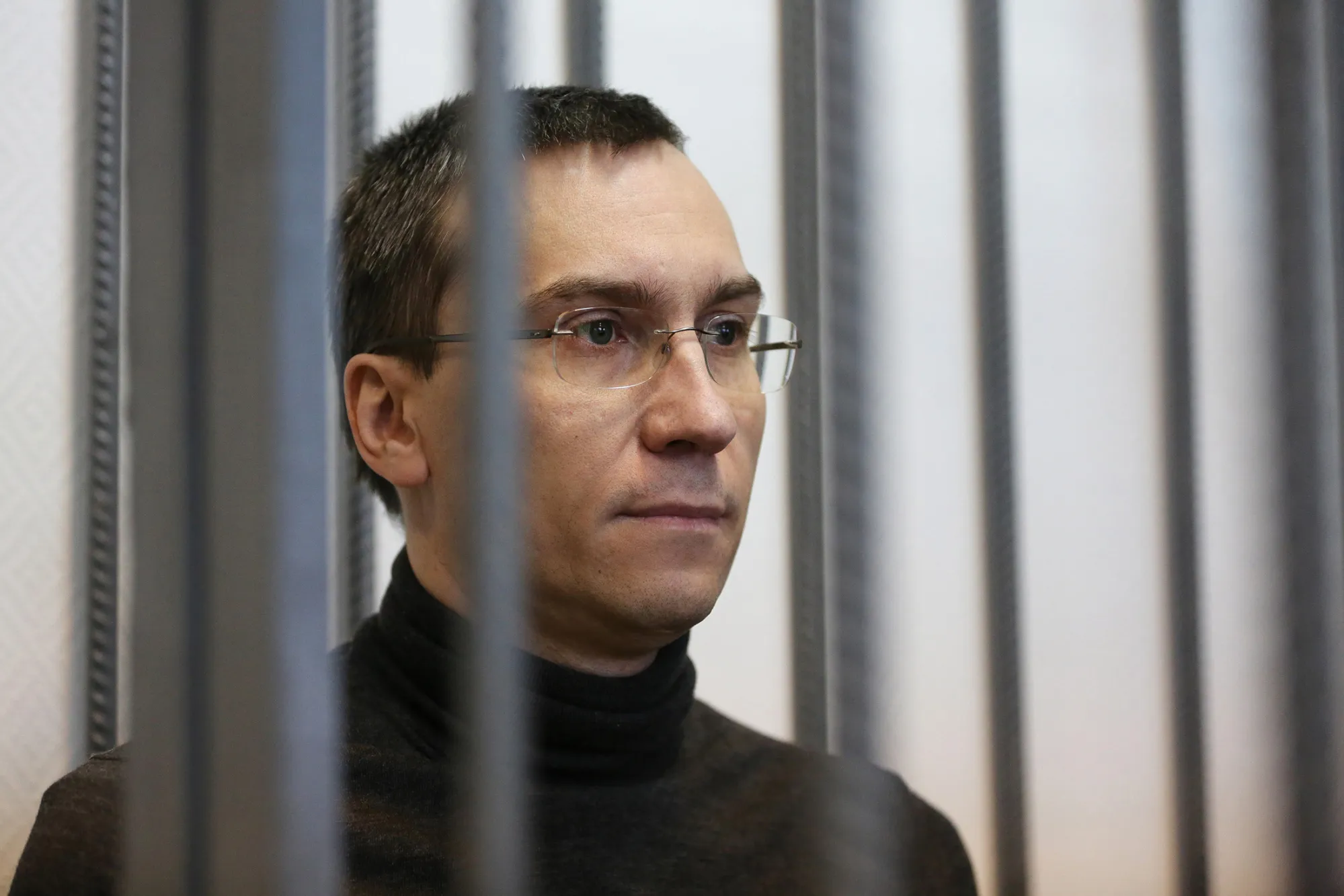 在其中一张访客长椅上,库利科夫的母亲在哭泣。库利科夫的搭档普柳什基娜试图安慰她,说仍然有上诉的机会。(他的律师几周后会提交上诉。)在被告的笼子里,库利科夫脸色苍白,低下头用双手捂住脸,靠在铁栏上,眼中泪水涌动。他的手紧紧握住金属杆,指关节变得发白。