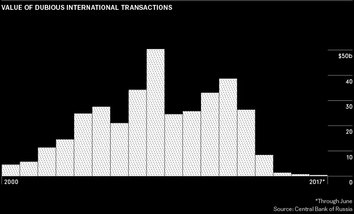 为了在监管机构之前保持领先,洗钱者经常改变他们用来将资金从俄罗斯转移到全球金融系统的复杂交易链、银行和空壳公司。监管机构表示,镜像交易在本十年的前半段是一个受欢迎的渠道,但它们已被其他转移资金的机制所取代,包括非法再保险合同和欺诈性法庭命令。其他洗钱渠道则试图利用前苏联国家如摩尔多瓦的薄弱监管环境。