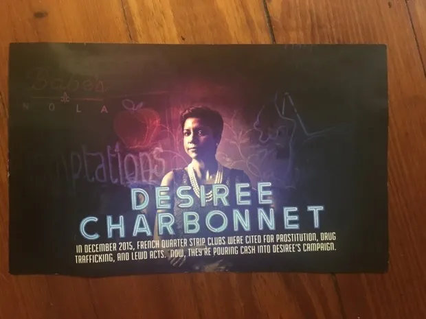 在查博内特身后是布莱尔·布特,一位在城市中颇具影响力的保释金商,南方贫困法律中心今年早些时候对她提起诉讼,指控她存在一些严重的不当商业行为,例如通过绑架和敲诈来收回保释费用。或许更具争议的是查博内特获得新奥尔良地区检察官莱昂·卡尼扎罗的支持,而他最近一个月内面临几起重大诉讼。其中一起诉讼由全国ACLU提起,指控卡尼扎罗使用虚假传票来胁迫证人在威胁监禁的情况下出庭——这一发现是由非营利调查新闻网站The Lens做出的,该网站也在起诉地区检察官。