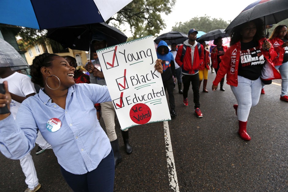 玛丽亚·希克曼,迪拉德大学的学生,在2016年11月8日星期二的选举日与同学们一起齐步走向新奥尔良的投票地点。杰拉尔德·赫伯特/AP在11月18日,新奥尔良的选民决定选举市议会成员拉托亚·坎特雷尔,取代前市法官德西蕾·沙博内特,接替米奇·兰德里担任市长。这两位候选人是10月14日初选中最后留下的,确保新奥尔良的下任市长将是该市历史上第一位女性。